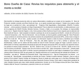 Postula aquí al aporte que dura 2 años. El bono de protección se entrega automáticamente, en cuotas, por 24 meses, y no se necesita postular. ¿cómo puedo obtener el beneficio por dos años? Plazo para postular a los próximos pagos del beneficio estatal. Conoce los requisitos para postular al bono dueña de casa.